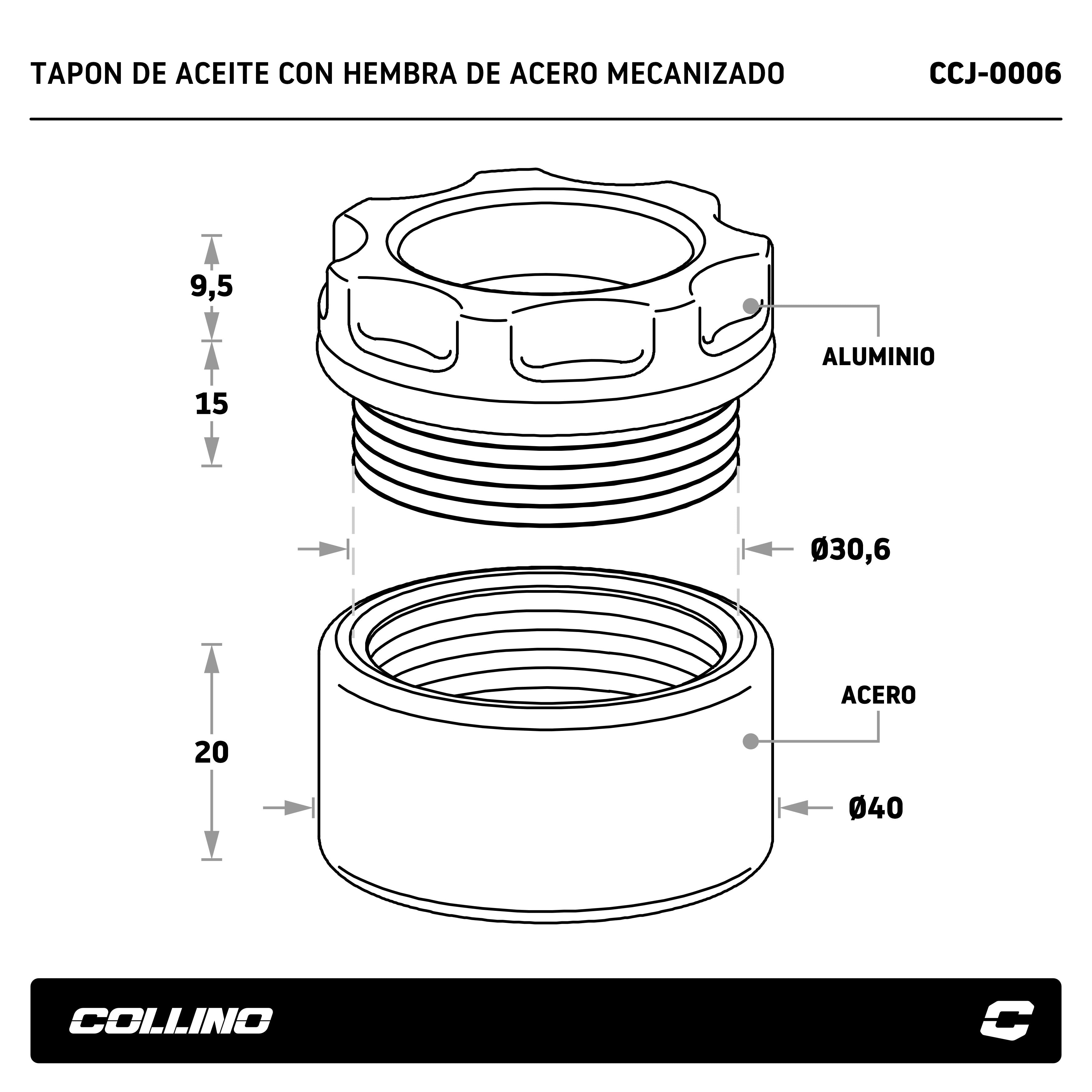 The Collino Oil Drain Plug is a precision-engineered component designed to deliver strength, reliability, and clean aesthetics. Machined from solid billet aluminum and fitted with a steel female insert, it combines lightweight design with high durability — ideal for both street and racing engines.
